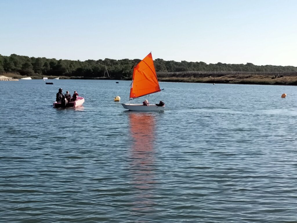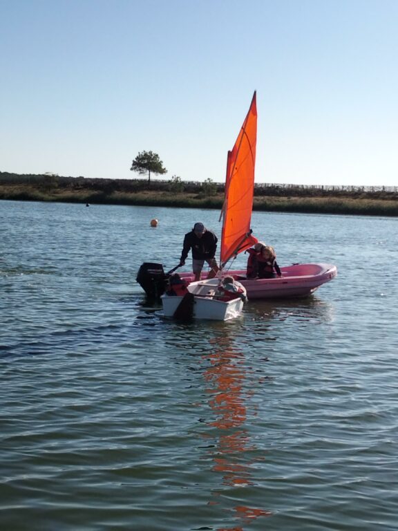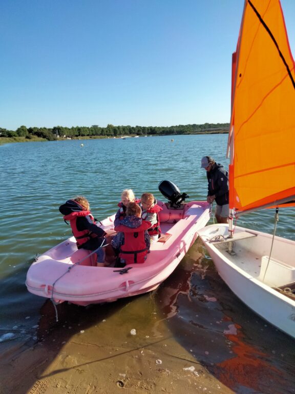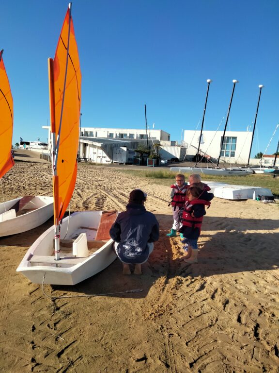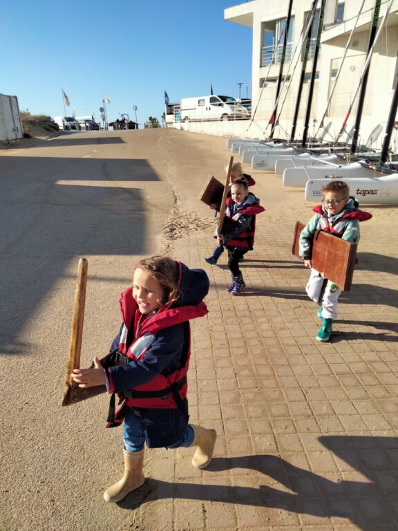 Aujourd’hui, c’était un grand jour, les enfants sont allés, chacun leur tour sur un optimist en autonomie – mais Clément tenait la corde ! avant de partir, il a fallu préparer son bateau avec les éléments…