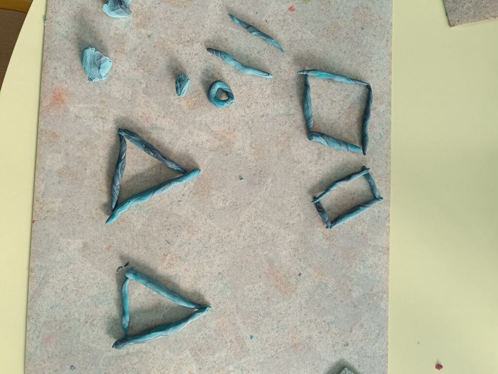 Défis pour les Ms : faire des formes géométriques à partir de colombin de pâte à modeler puis les nommer. Bravo