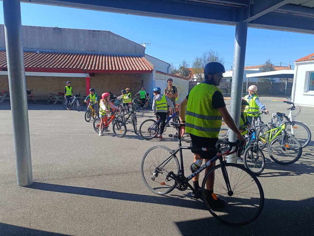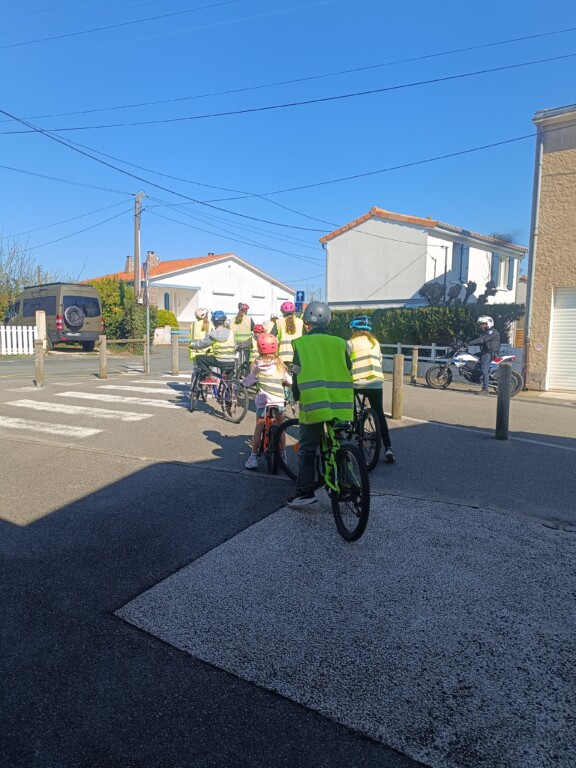 Sous un soleil radieux , la classe des CM est partie pour une sortie vélo avec Pierre, Osman, Maîtresse Victorine et 2 agents de la Police Municipale. Belle sortie à eux. L’objectif étant de se préparer à obtenir le  ” savoir rouler”.