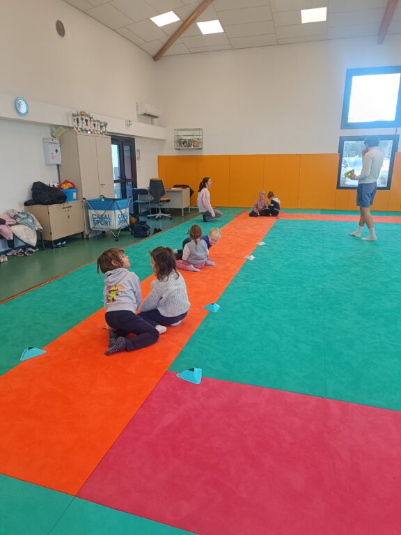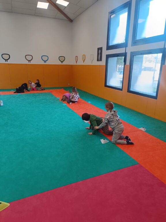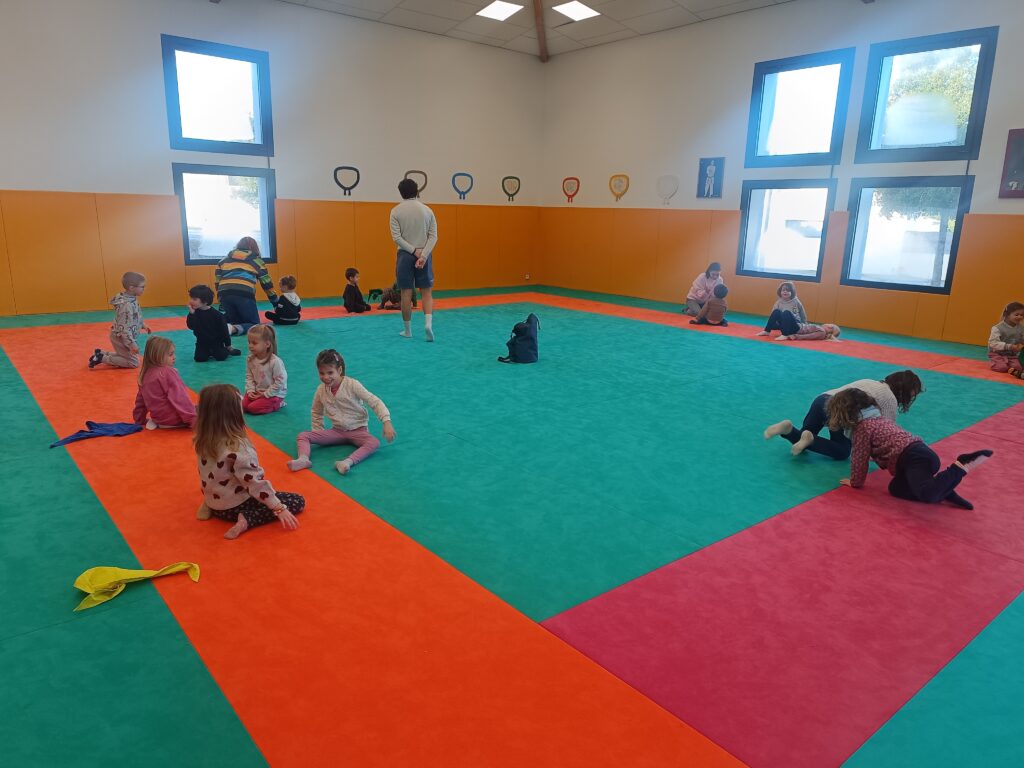 Mardi, avec Pierre, les élèves ont poursuis les apprentissages en lutte : pousser, tirer sans faire mal ni avoir mal.
