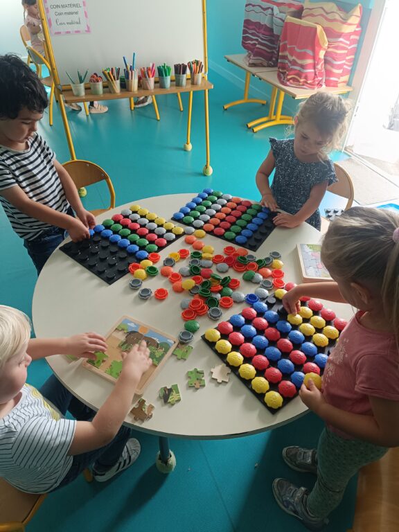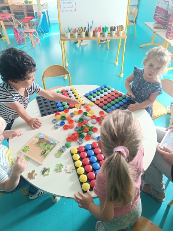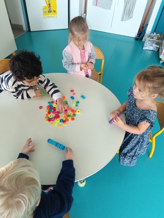 En PS, nous apprenons à trier, en respectant une consigne; pour le moment, c’est le tri de couleur.